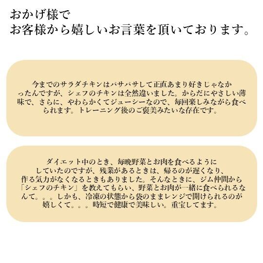 ※シェフのチキンでは、すべての商品に着色料、保存料、化学調味料などの添加物は一切使用しておりません。