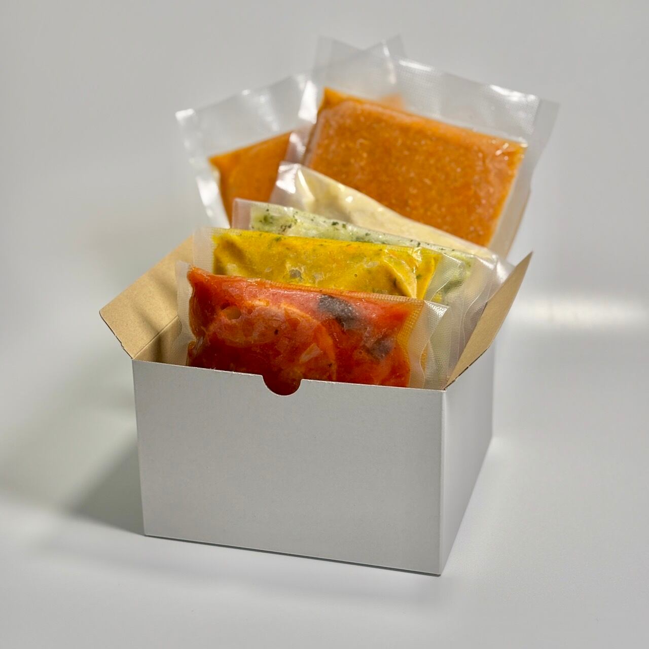 全商品、冷製でもお召し上がりいただけます。冷製で召し上がる場合は、冷蔵庫解凍をおすすめしております。