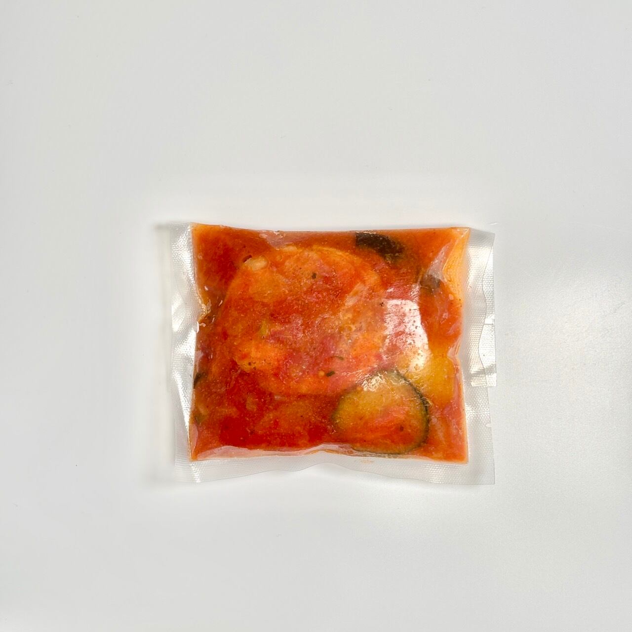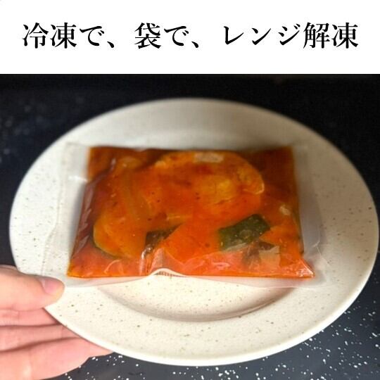 全商品、袋のままレンジ解凍が可能です。冷凍の状態で商品をお皿の上に置き、電子レンジ600W約3分温めてください。※商品や機種により多少前後する場合があります。