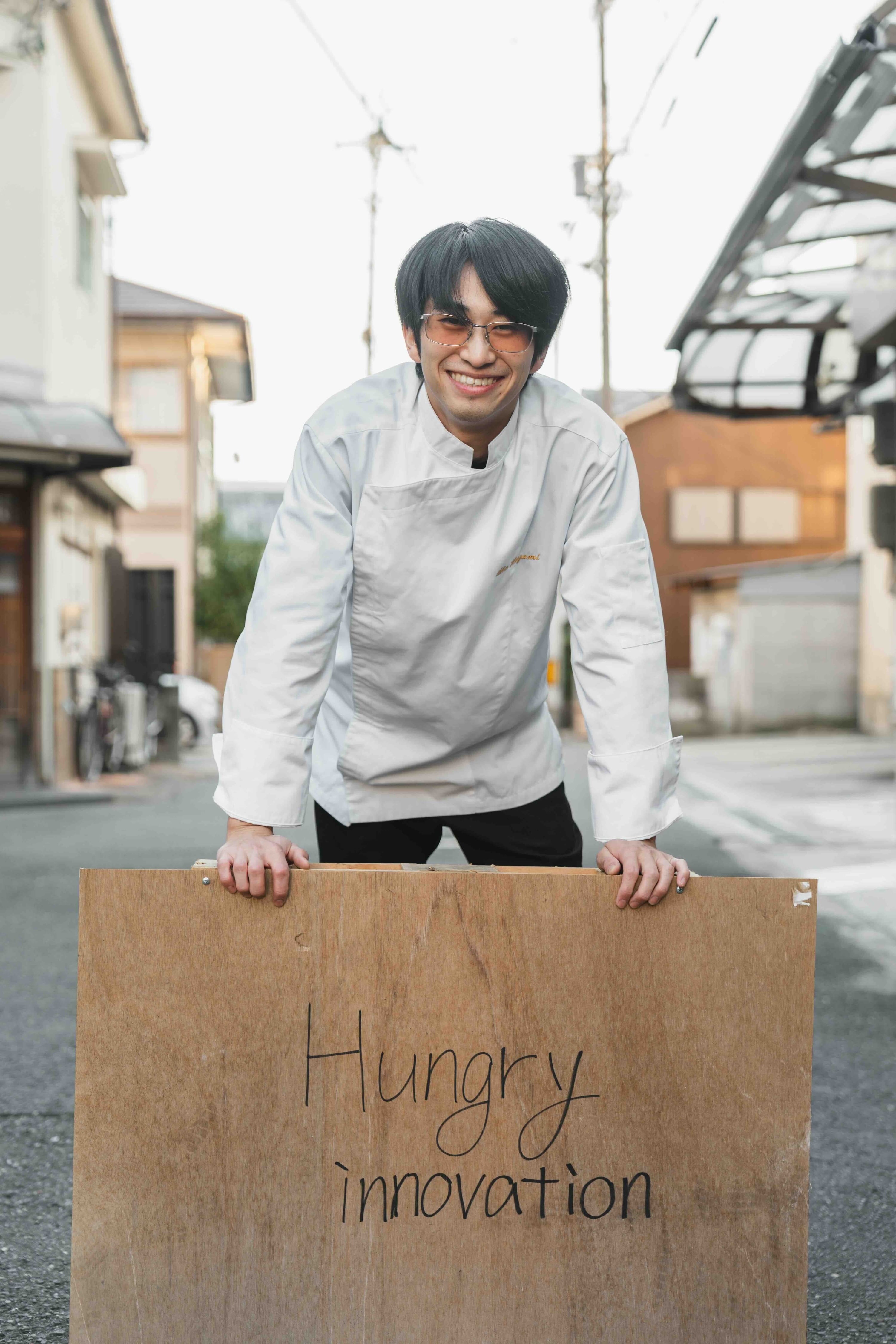 大阪府大東市生まれ。調理師専門学校卒業後、京都のフランス料理店で料理人・パティシエ・サービスマンとして修業を積んだのち、東京のフランス料理店に転職。26歳で京都祇園店・虎ノ門ヒルズ店の立ち上げにも携わり、弱冠27歳でスーシェフに就任し、料理人兼ソムリエとして現場に立ち、28歳でHungry innovationを立ち上げる。